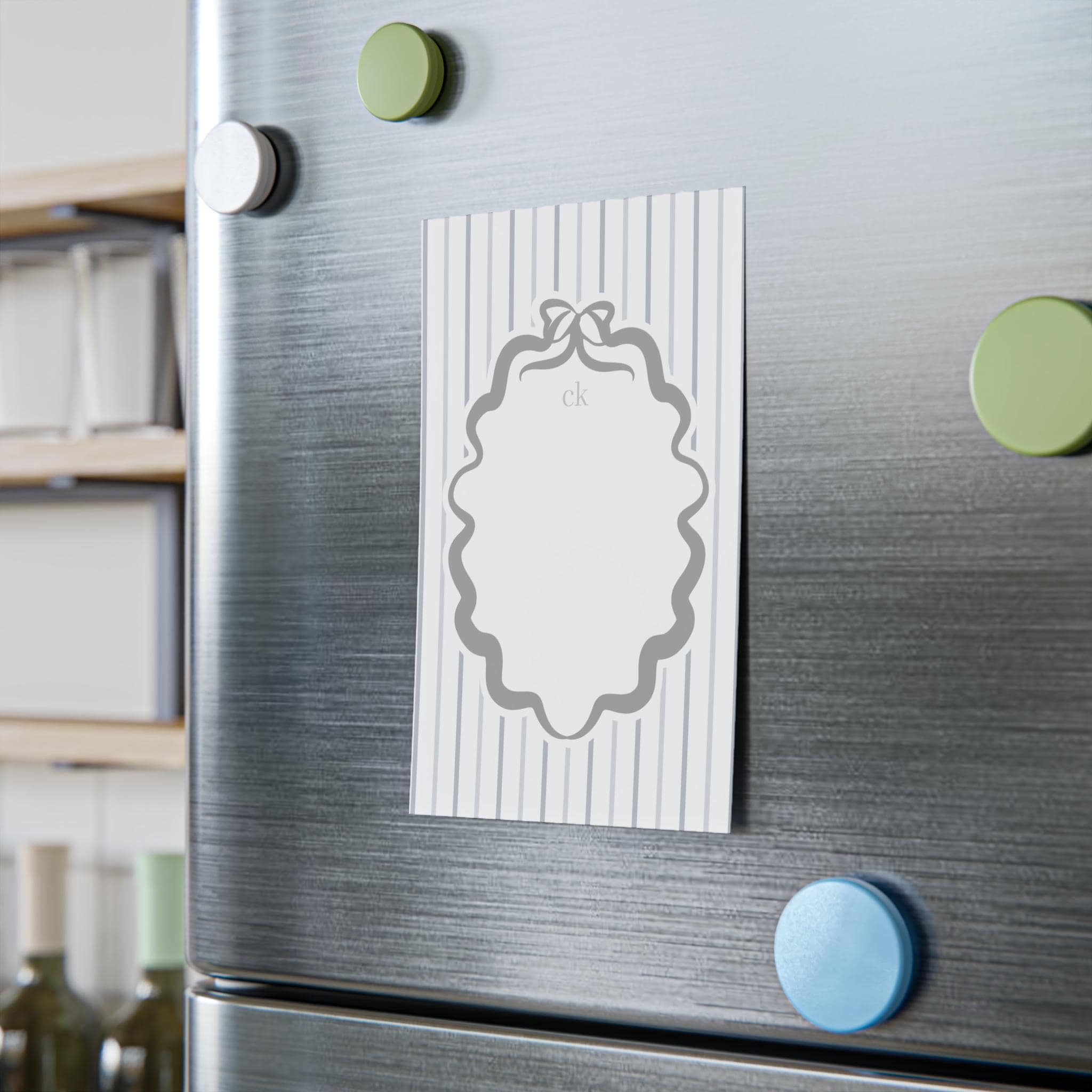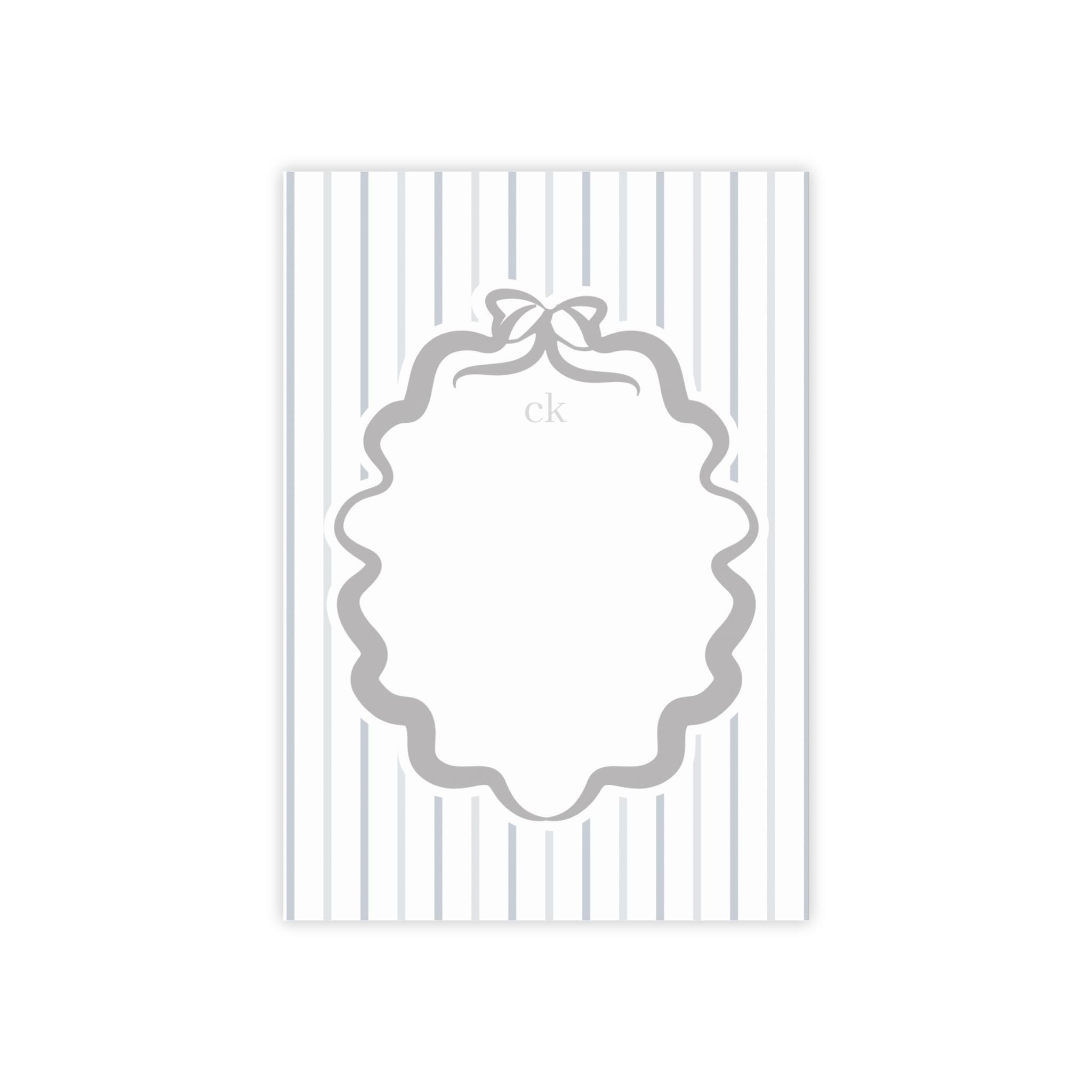 A stack of bright, striped Post-it® Note Pads with a subtle scalloped frame for quick notes, reminders, and little messages. The narrow blue-gray stripes give a calm, organized look while the soft scalloped label in the center provides a tidy place to write names, short lists, or headings. Lightweight and compact, these pads sit neatly on a desk, tuck into planners, or come along in a bag—handy whenever a thought needs capturing. The one-sided printed design keeps the back clean for additional notes, and the reliable 3M adhesive holds the pad in place without leaving residue. Assembled in the USA and available in multiple sizes, these pads balance charming stationery style with everyday practicality.