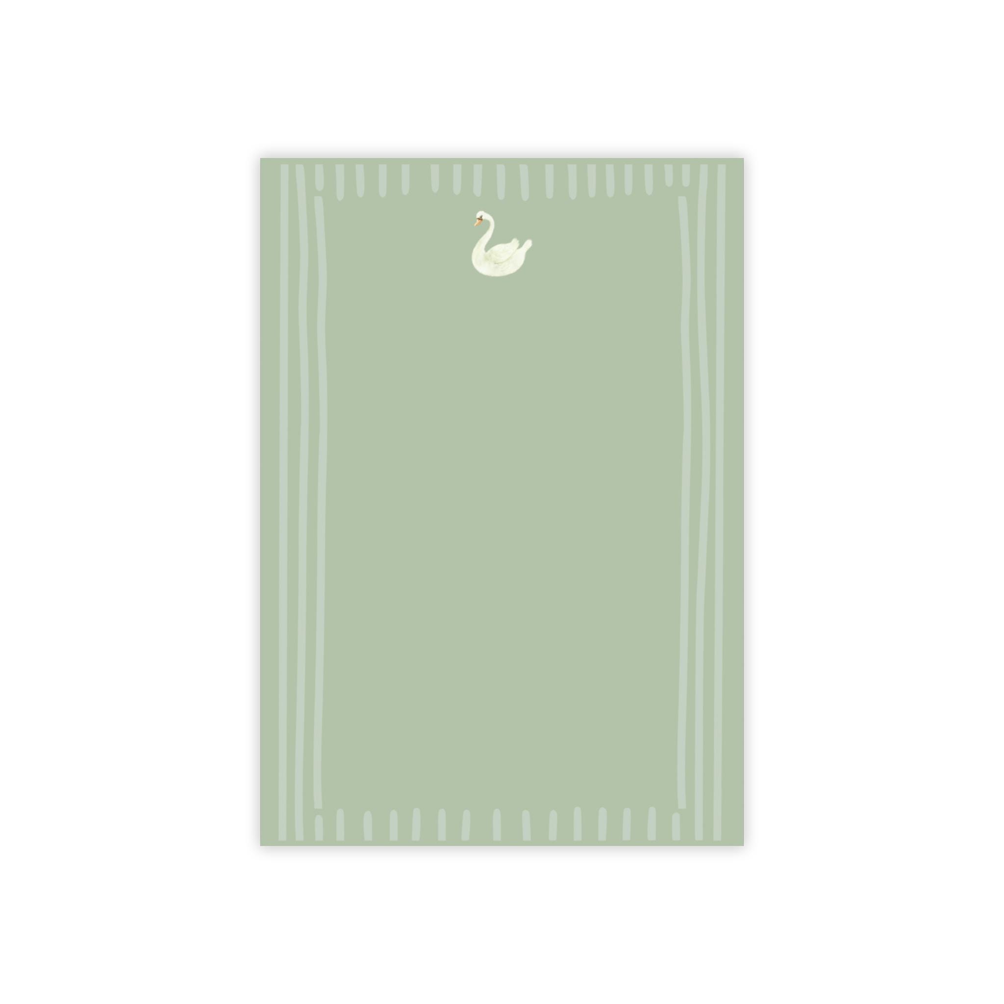 Minimal Swan Notepad, Note Pad | Green Border Stationery