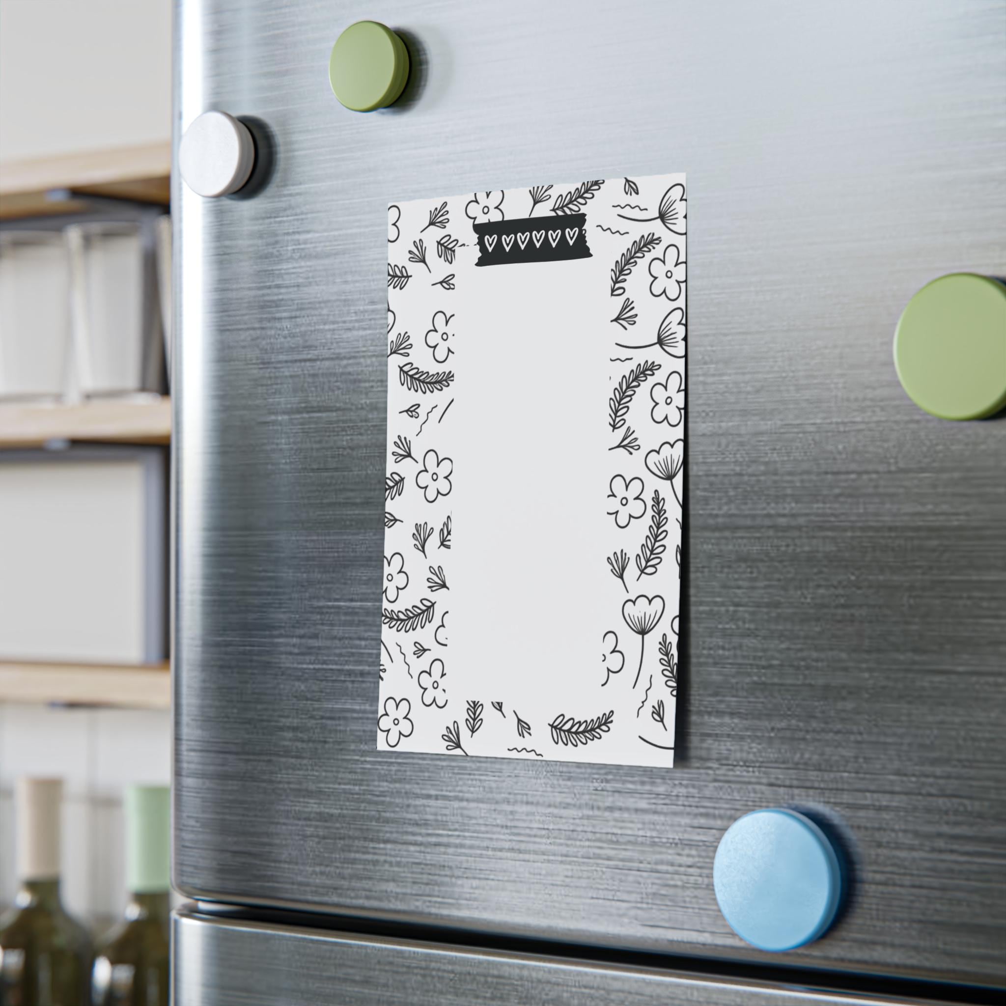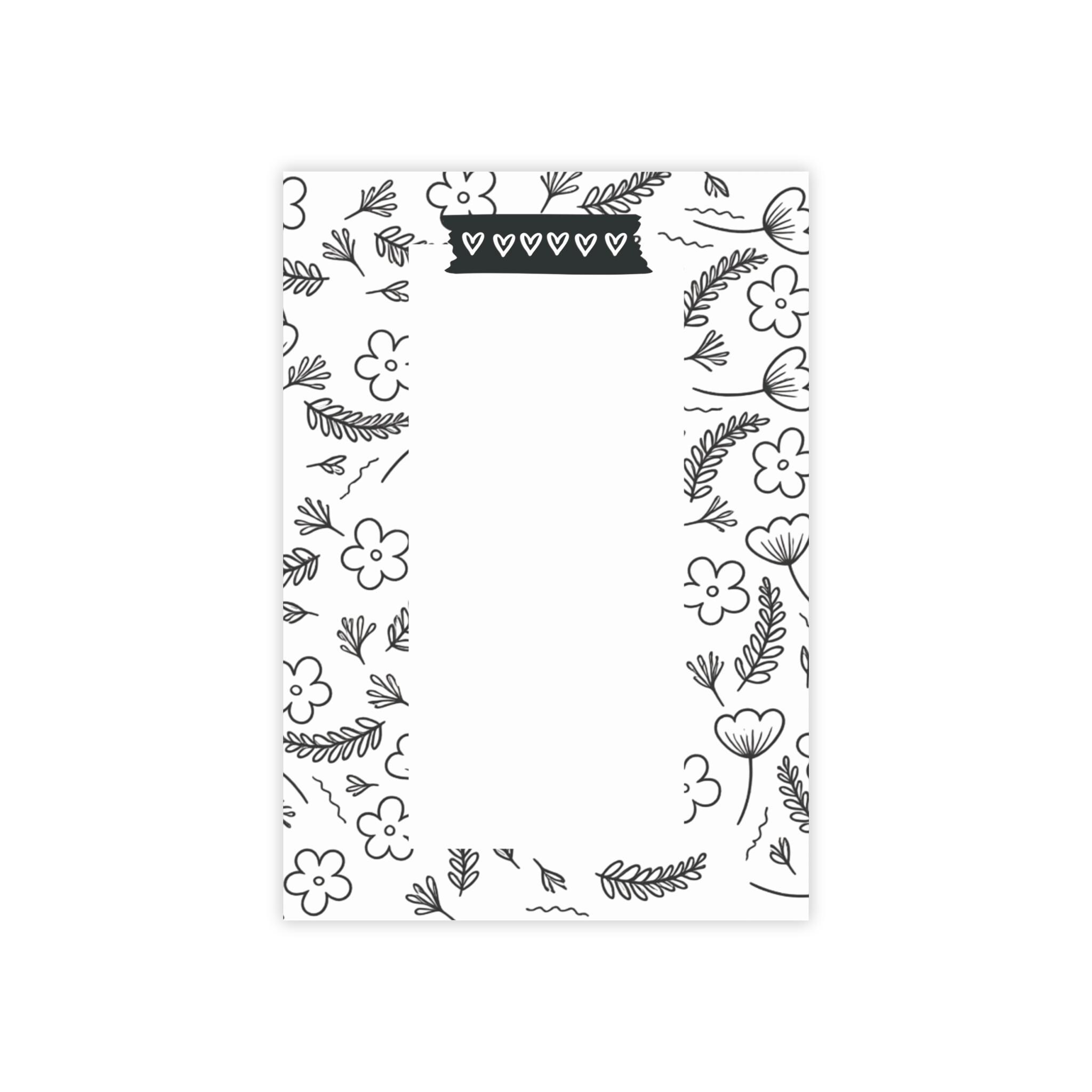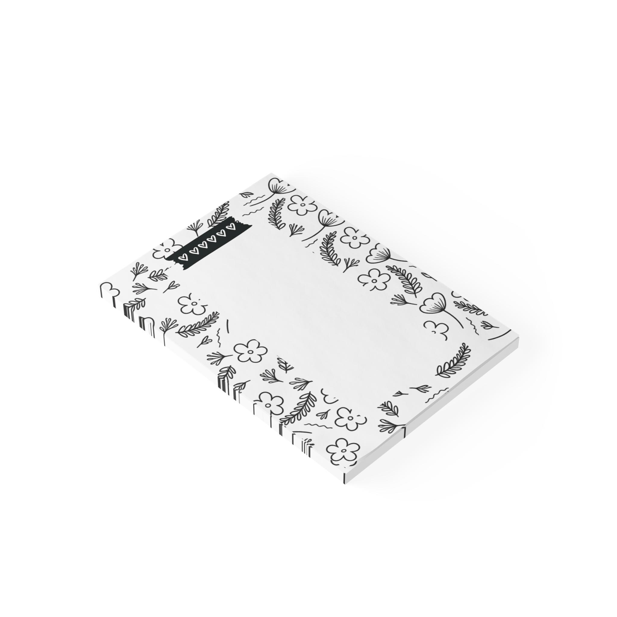 A stack of cheerful, hand-drawn floral note pads that bring a quiet, creative pause to busy days. Soft black-and-white blossoms frame a roomy center for grocery lists, quick reminders, or little love notes. The simple banner at the top adds a touch of personality — jot a date, a name, or a tiny headline and keep your desk organized without shouting for attention. Light-weight, easy to peel sheets sit ready by the phone, coffee mug, or craft table so small tasks feel manageable and small joys are recorded.