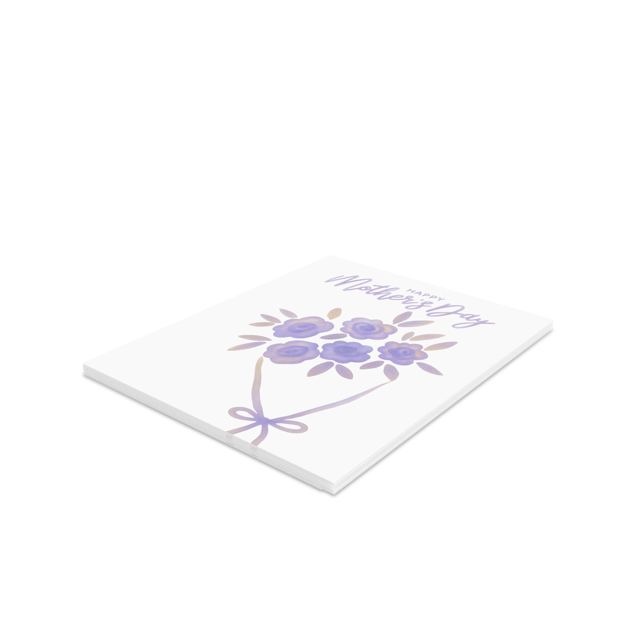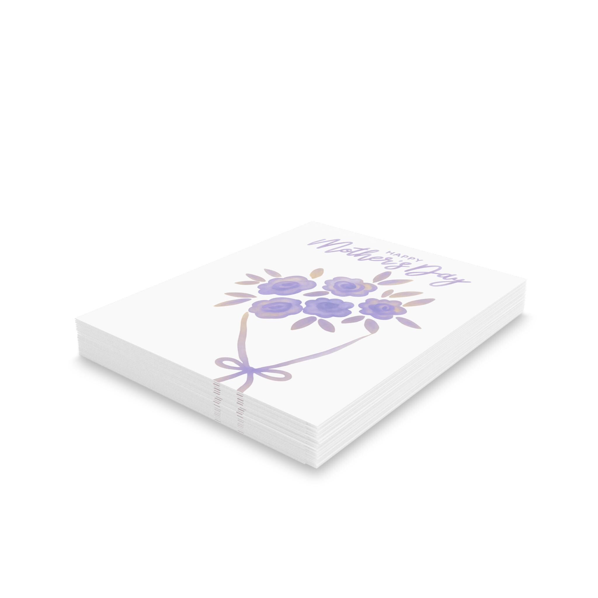 A gentle, hand-illustrated greeting card that carries a soft bouquet of lavender-hued blooms and a warm “Happy Mother’s Day” message. The matte finish lets the delicate watercolor-style petals and subtle metallic-looking accents read like a keepsake rather than a glossy impulse buy. Sized at 4.25" x 5.5", each card comes with a matching white envelope and can be printed with your chosen message on the inside. These cards bring a quiet, tender moment to birthdays, Mother’s Day, or any day you want to say thank you with a thoughtful, homey touch.