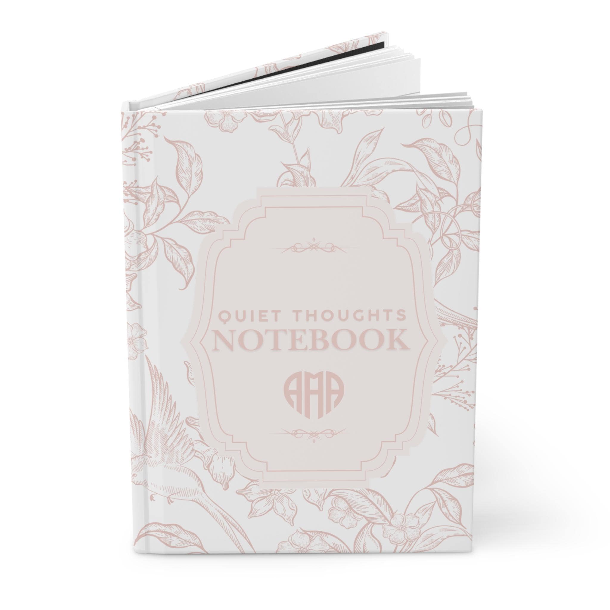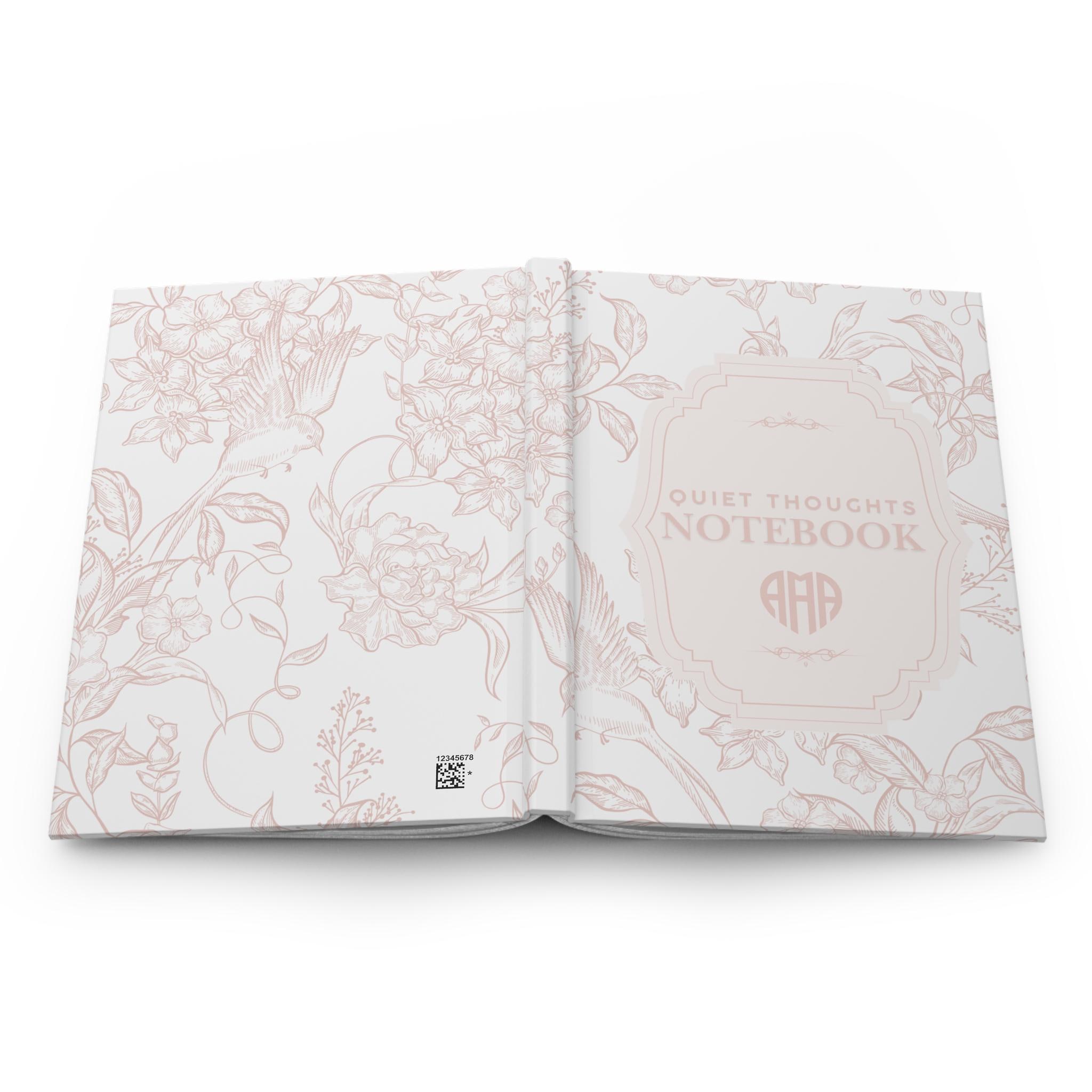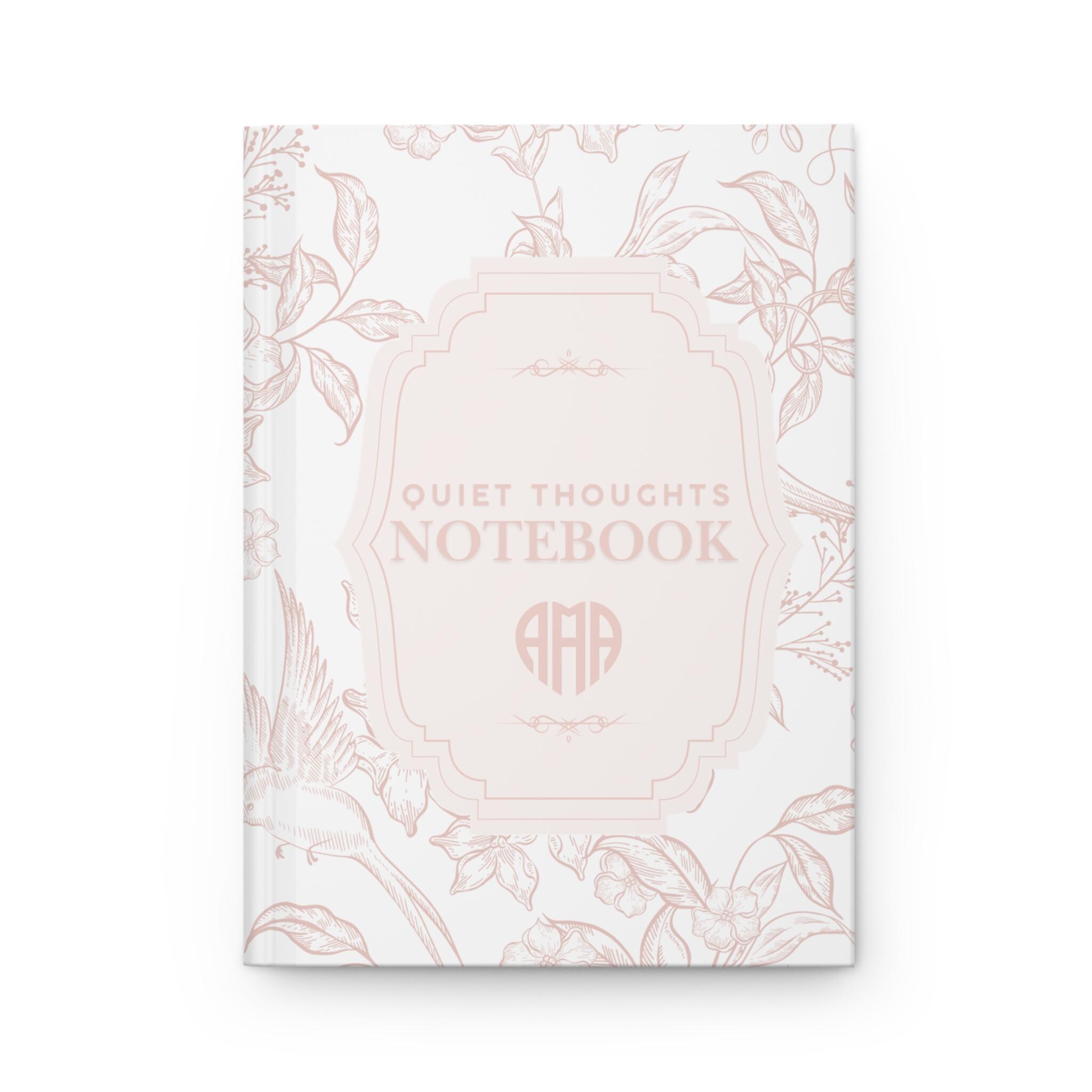 Quiet Thoughts floral monogram Notebook Hardcover Journal | blush botanical cover