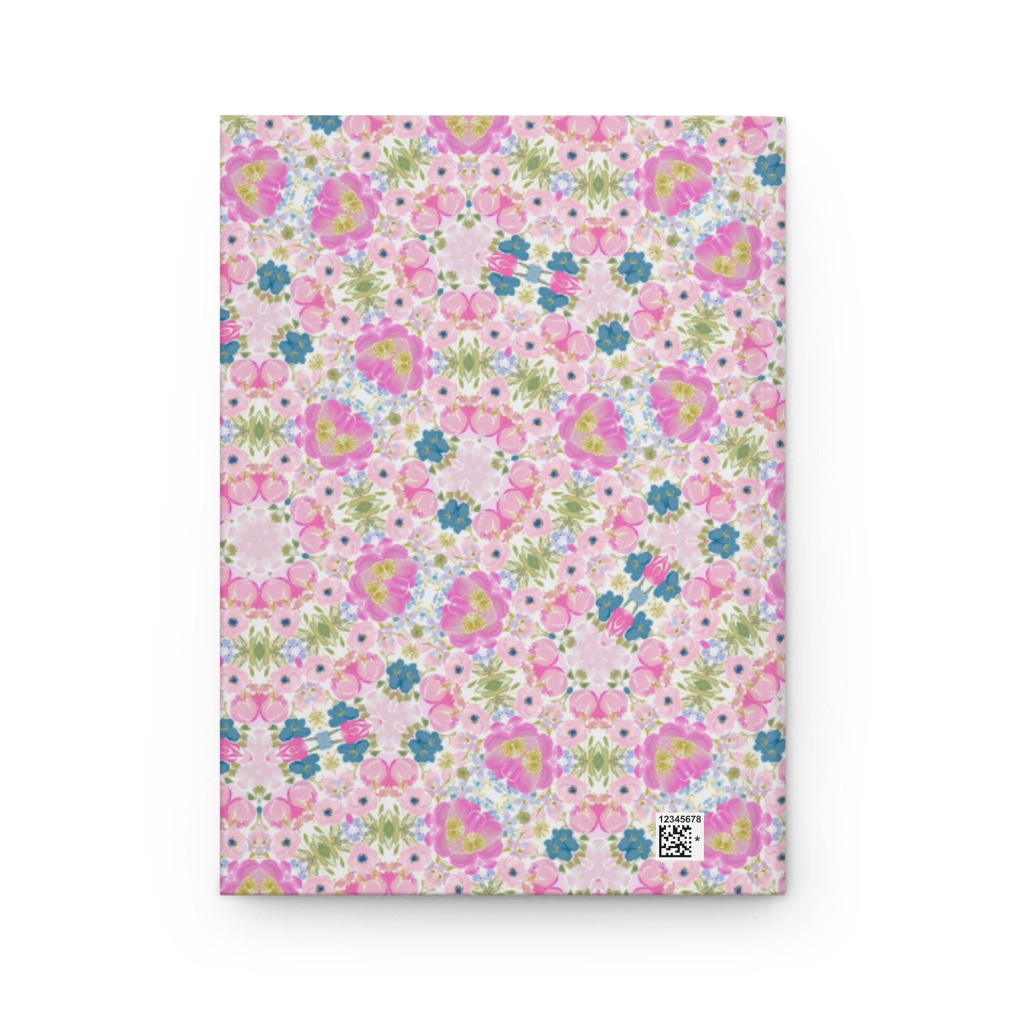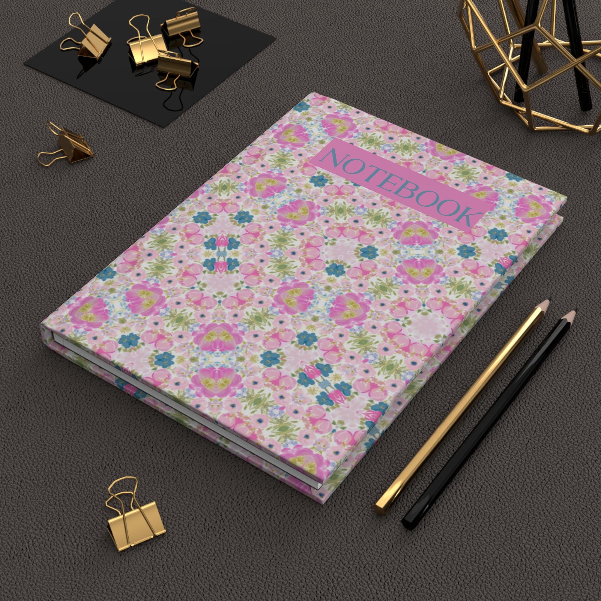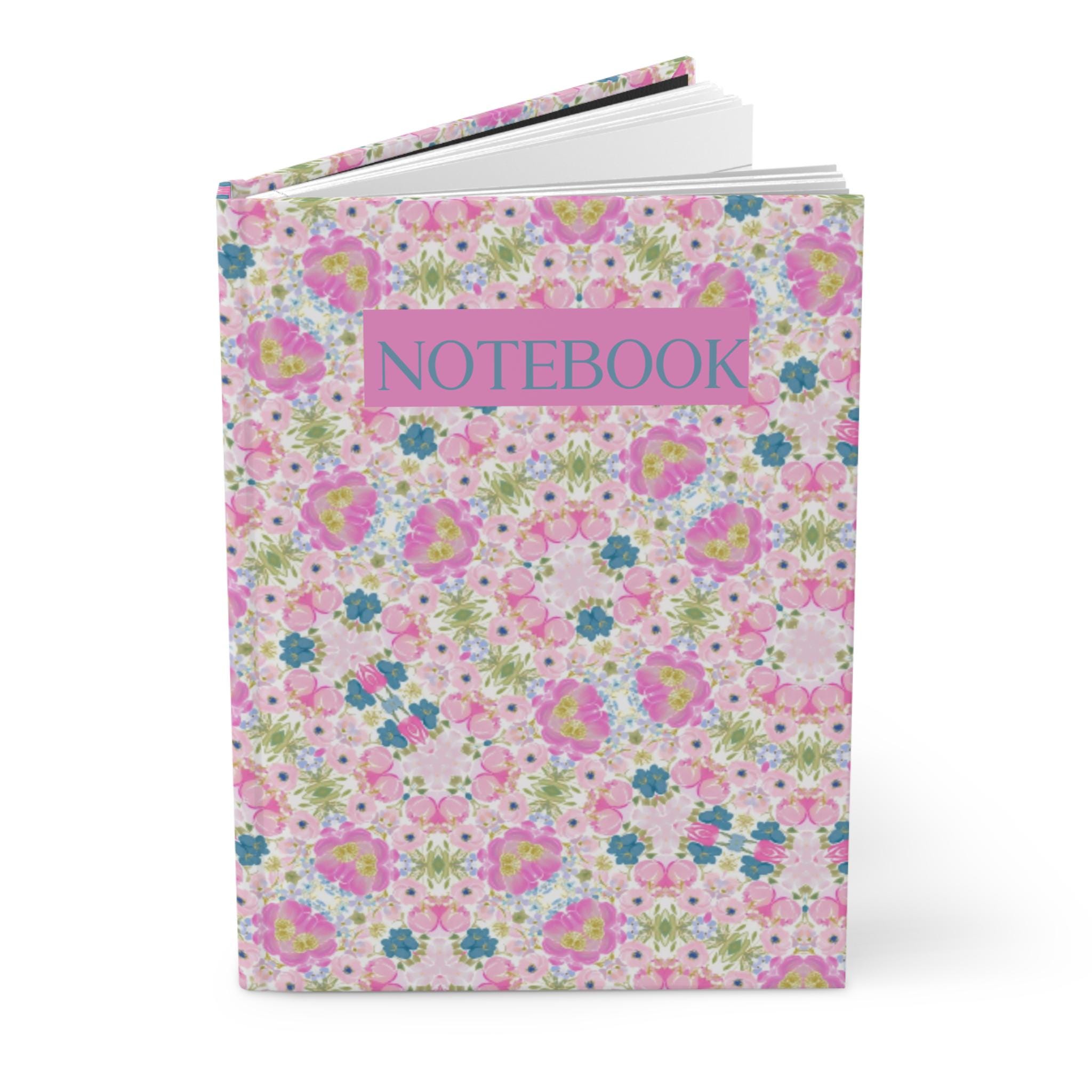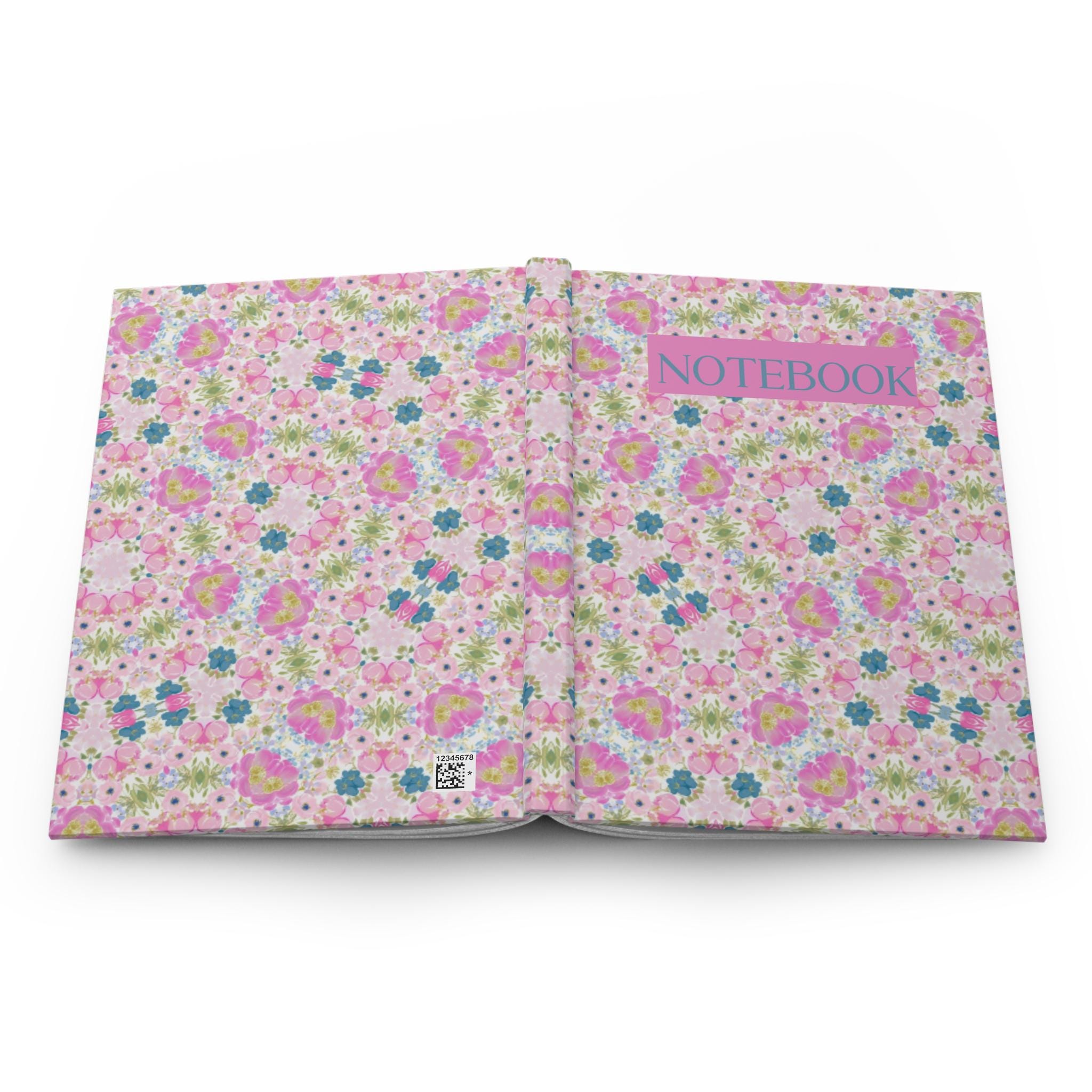 Pink Floral Pattern Notebook Hardcover Journal | Kaleidoscope Blossom Design
