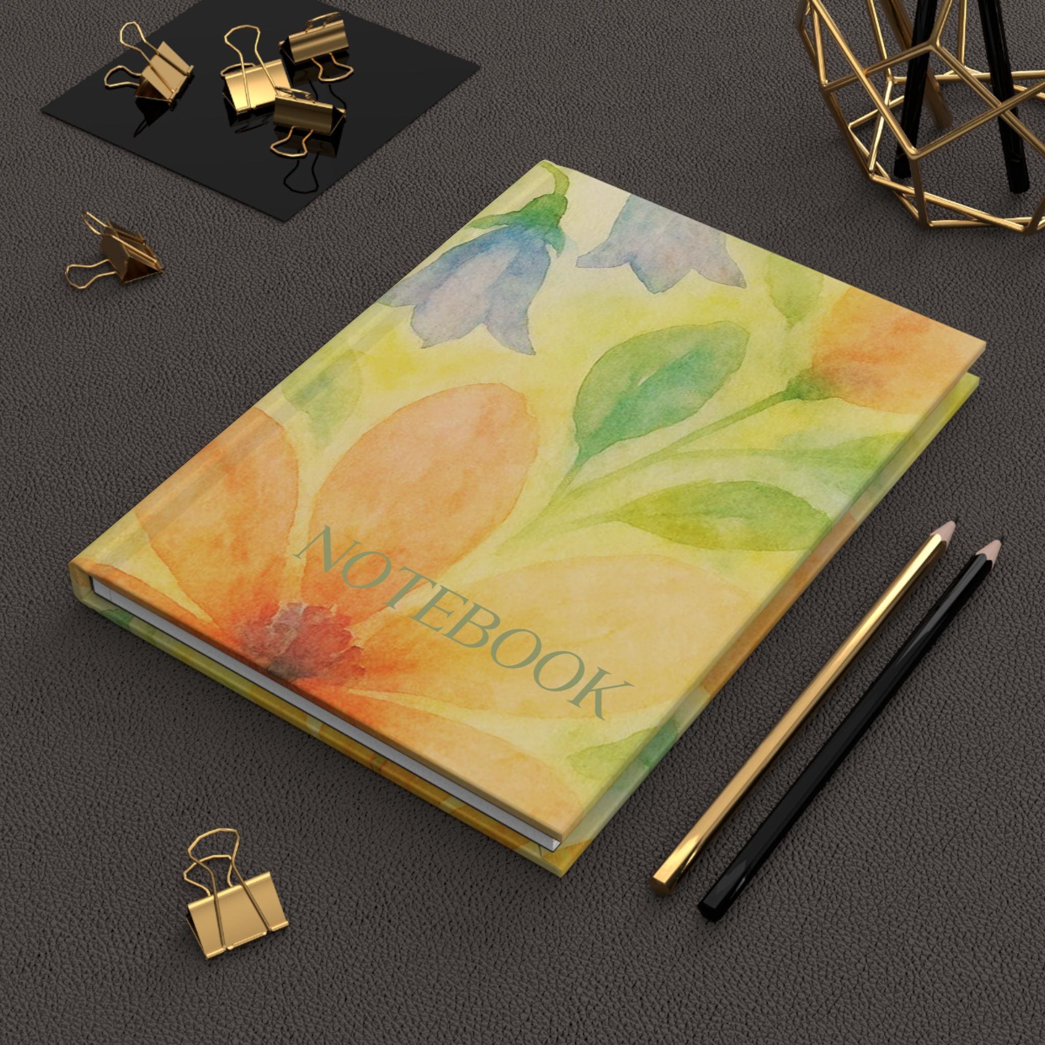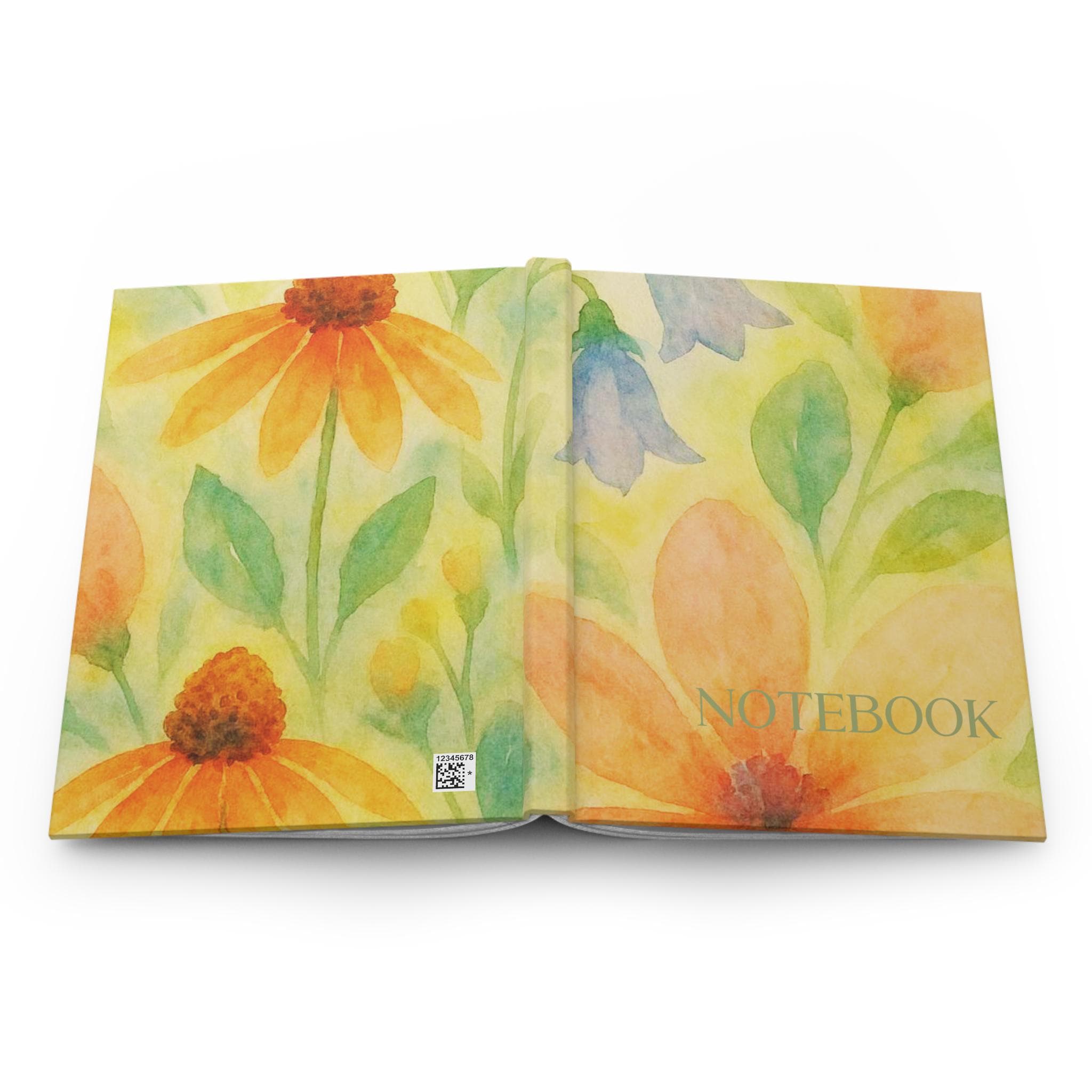 Watercolor Yellow Orange Wildflowers Hardcover Journal | Floral Notebook