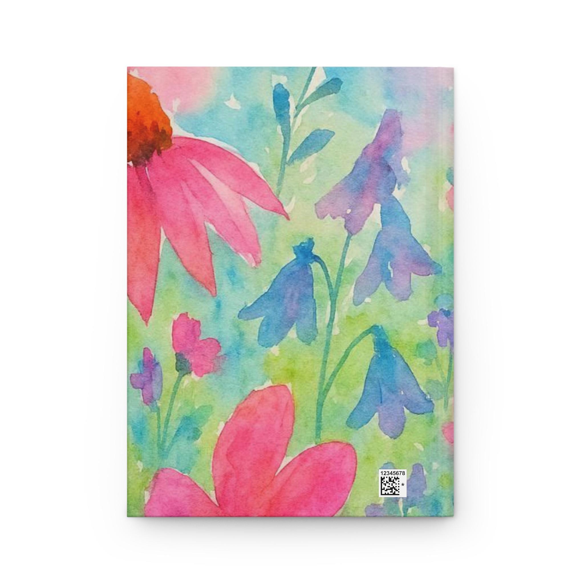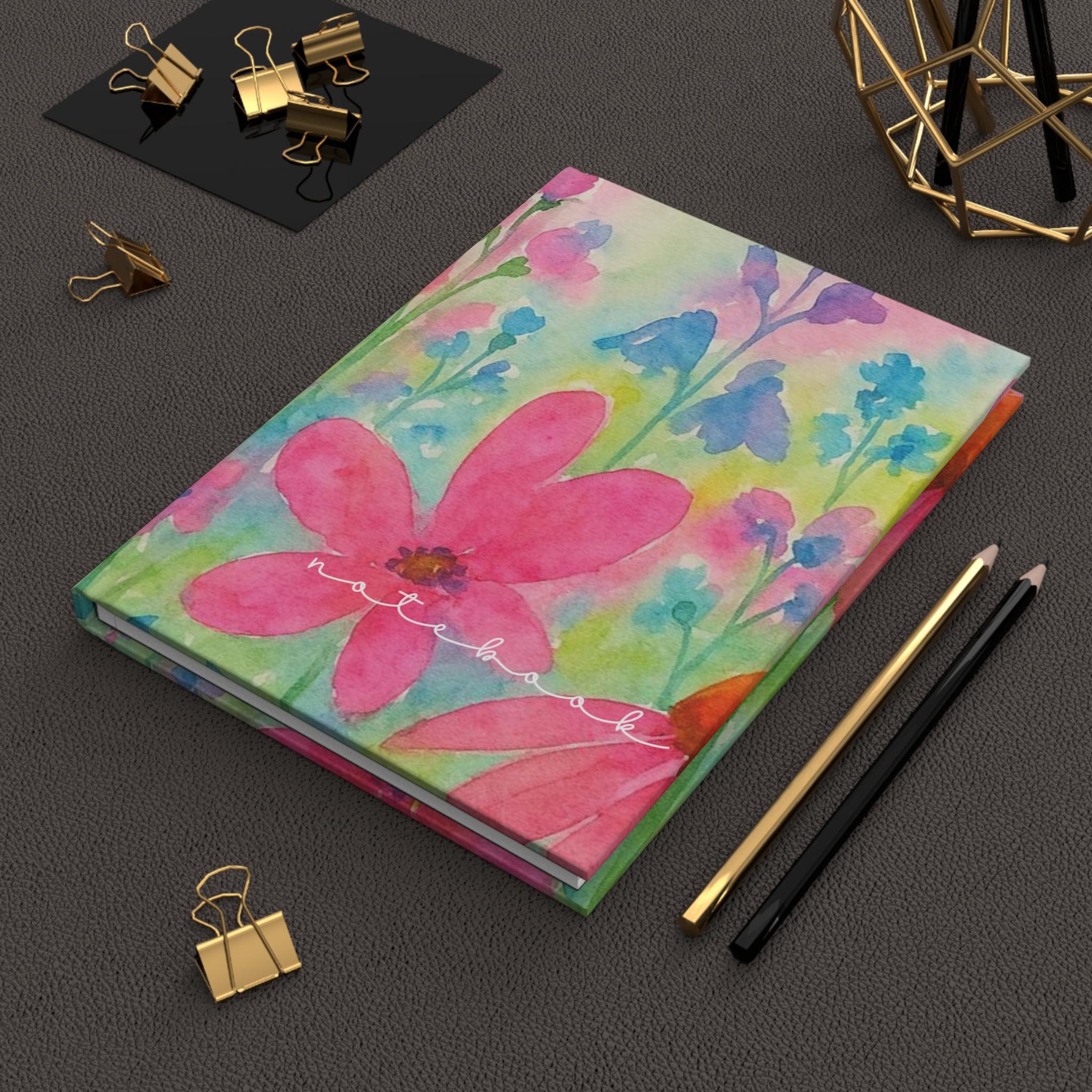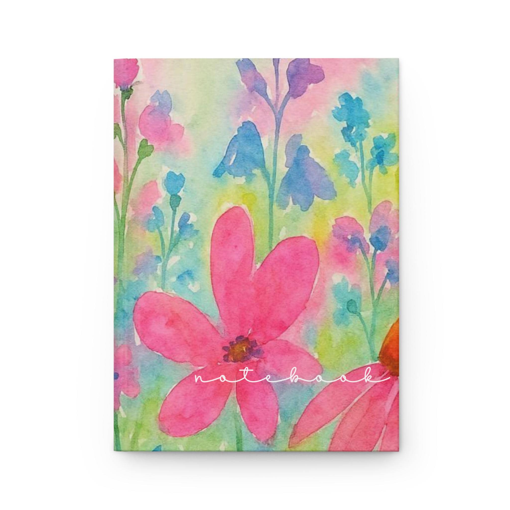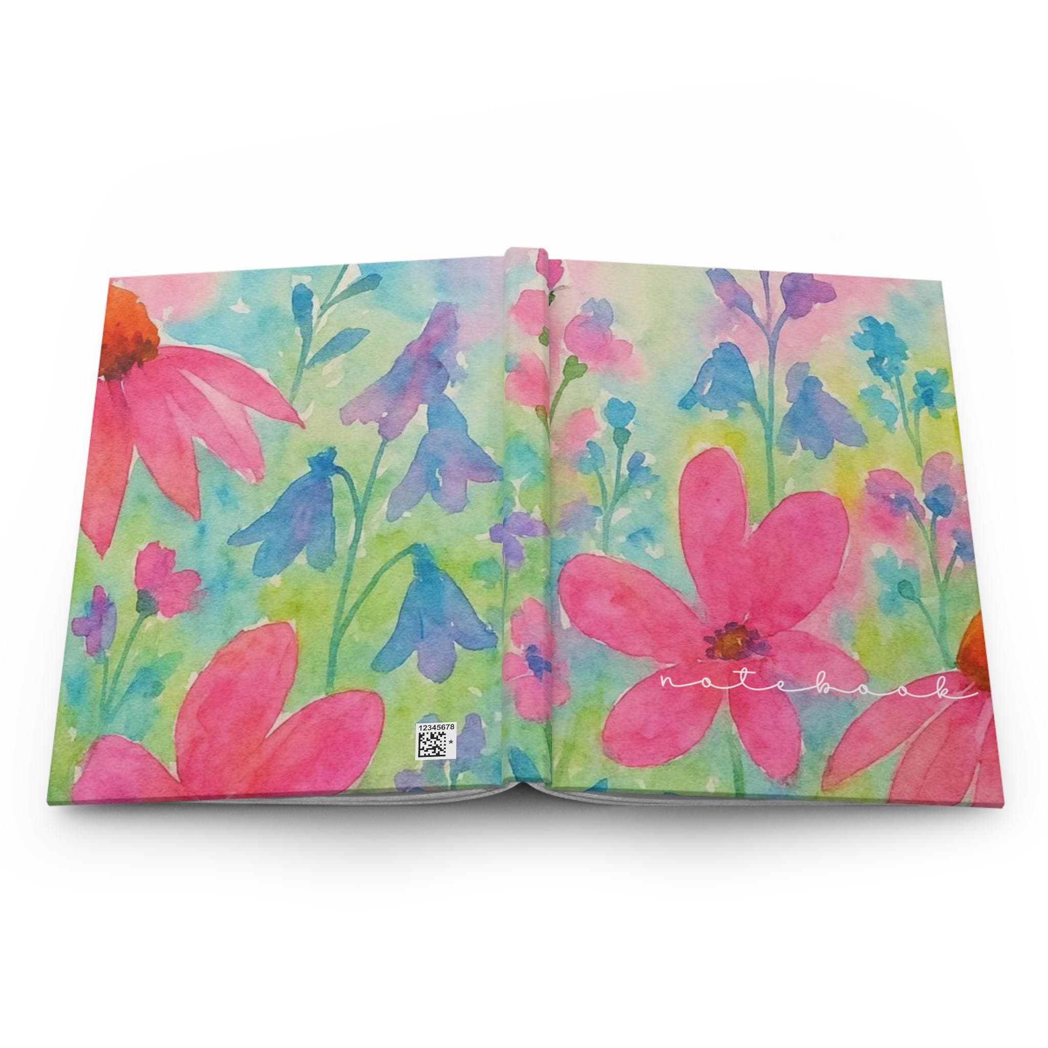 Pink Watercolor Floral Hardcover Journal | Floral Notebook, Bright Garden Art
