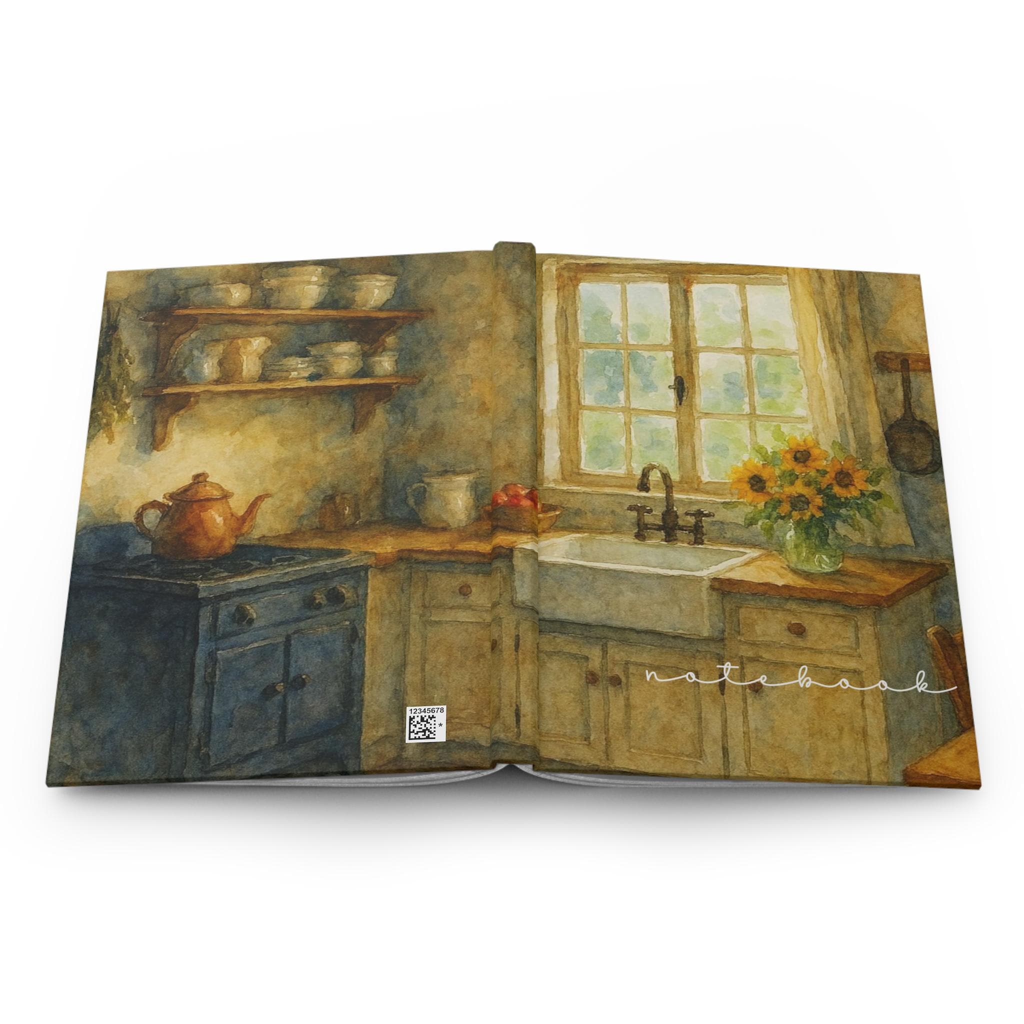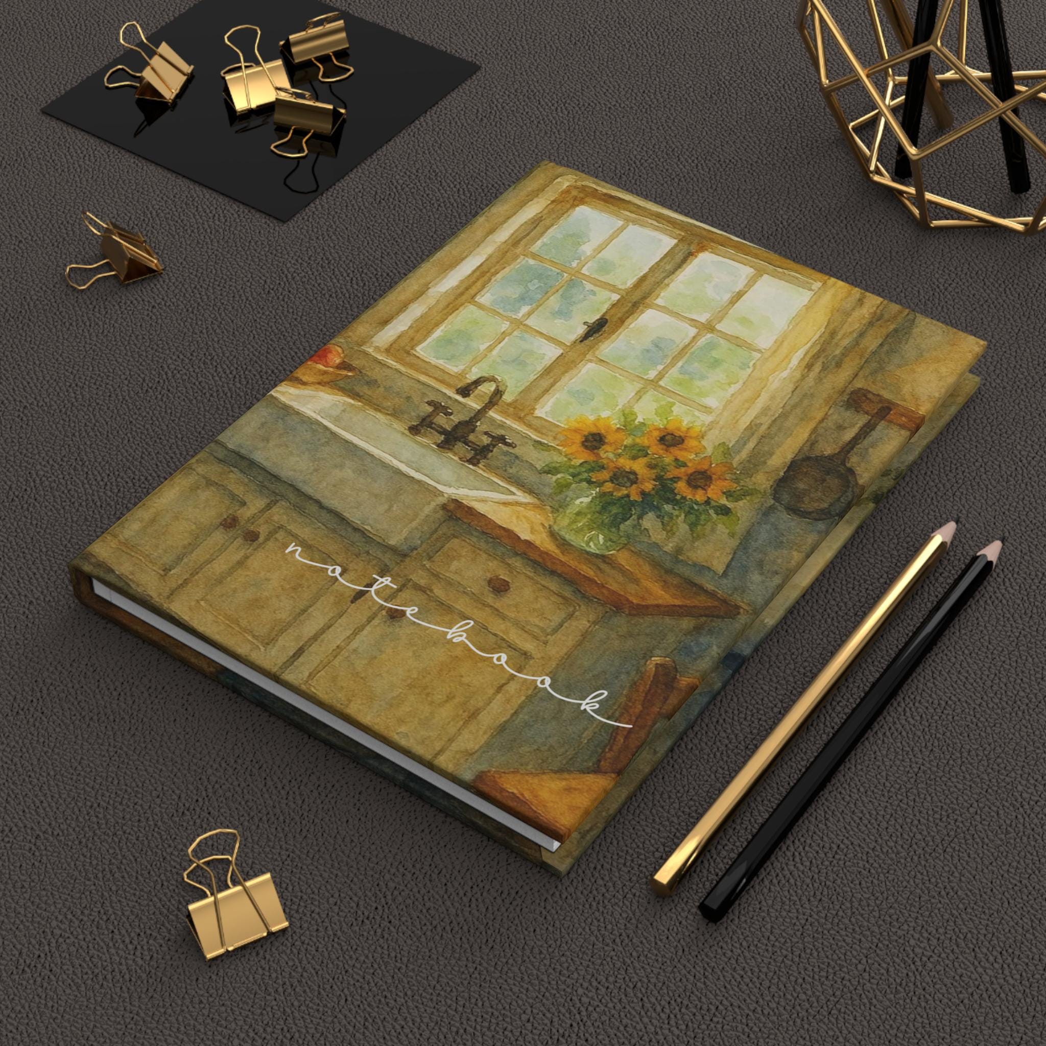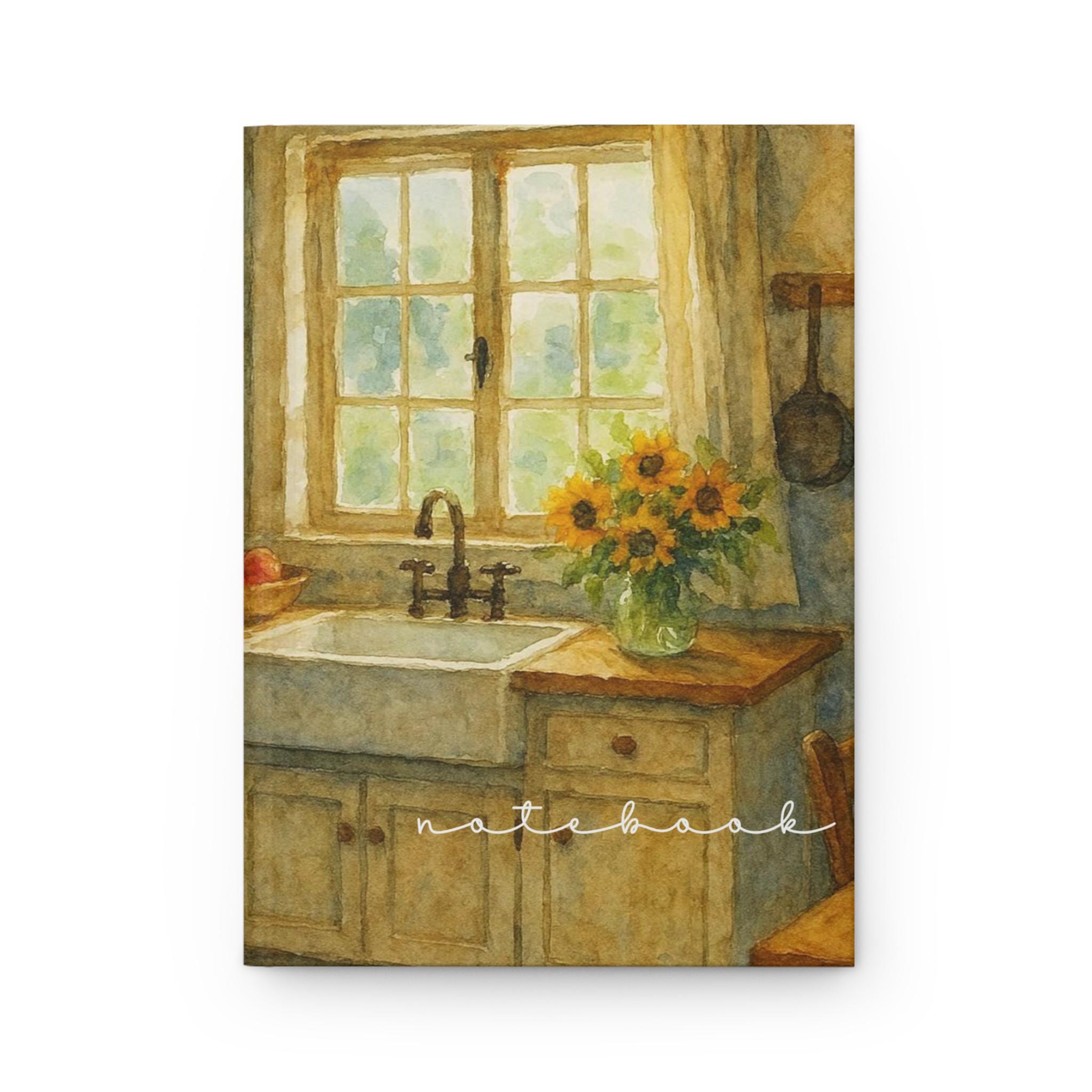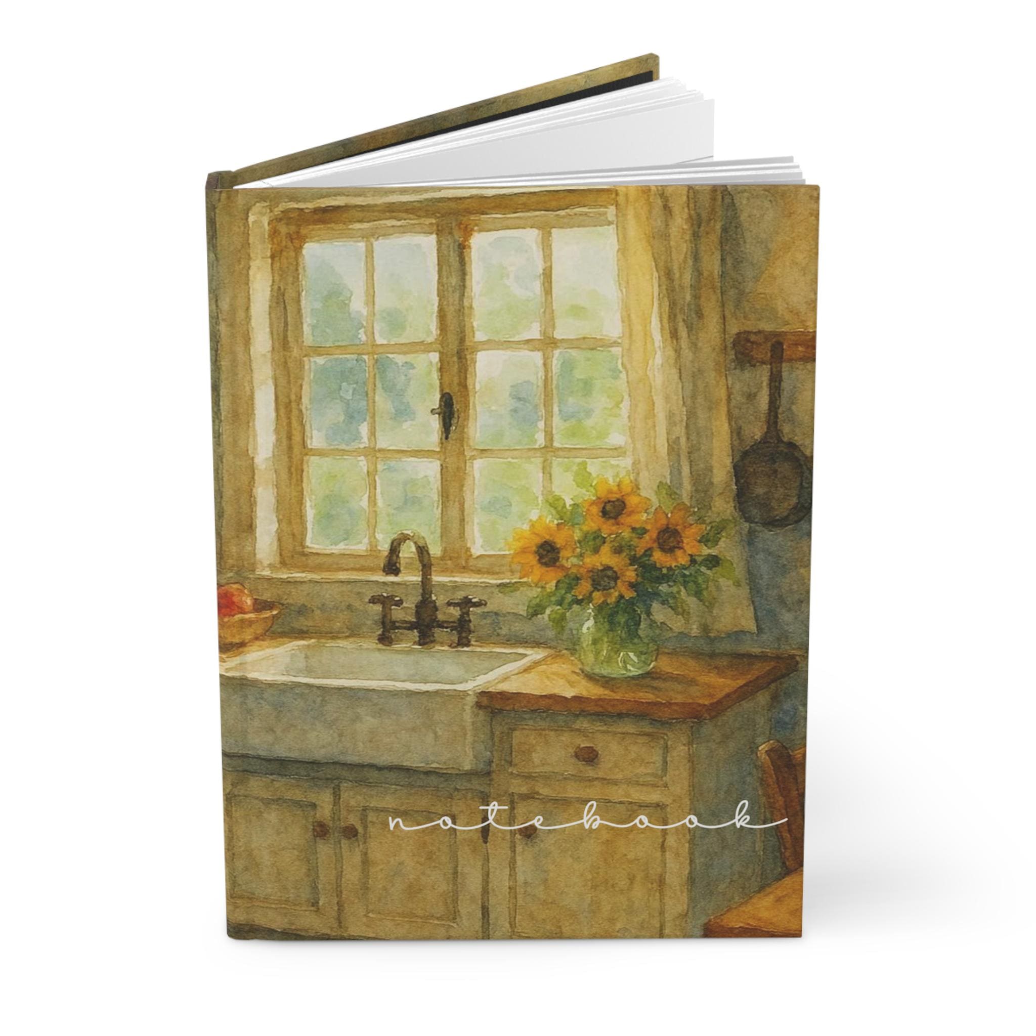Sunlit Country Kitchen Journal | Hardcover Notebook with Watercolor Sunflowers